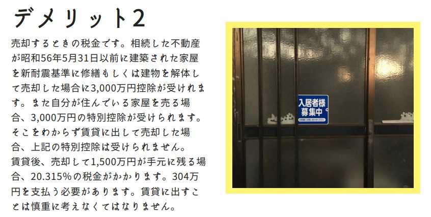 そこをわからず賃貸に出して売却した場合、上記の特別控除は受けられません。