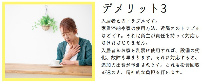 家賃滞納や家の使用方法、近隣とのトラブル などです。