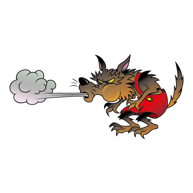 「わらで作った家なんて、ひと吹きすれば壊せるぞ!」