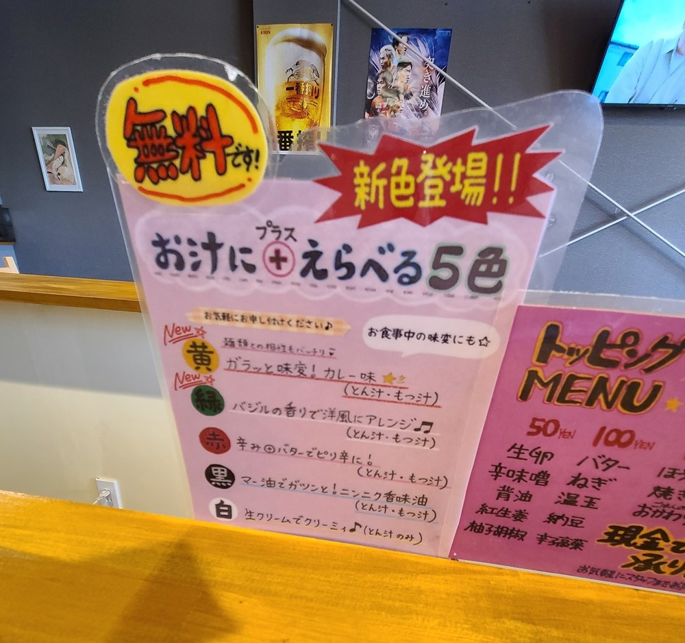 なにやら味変できるアイテムが無料!のPOPが。