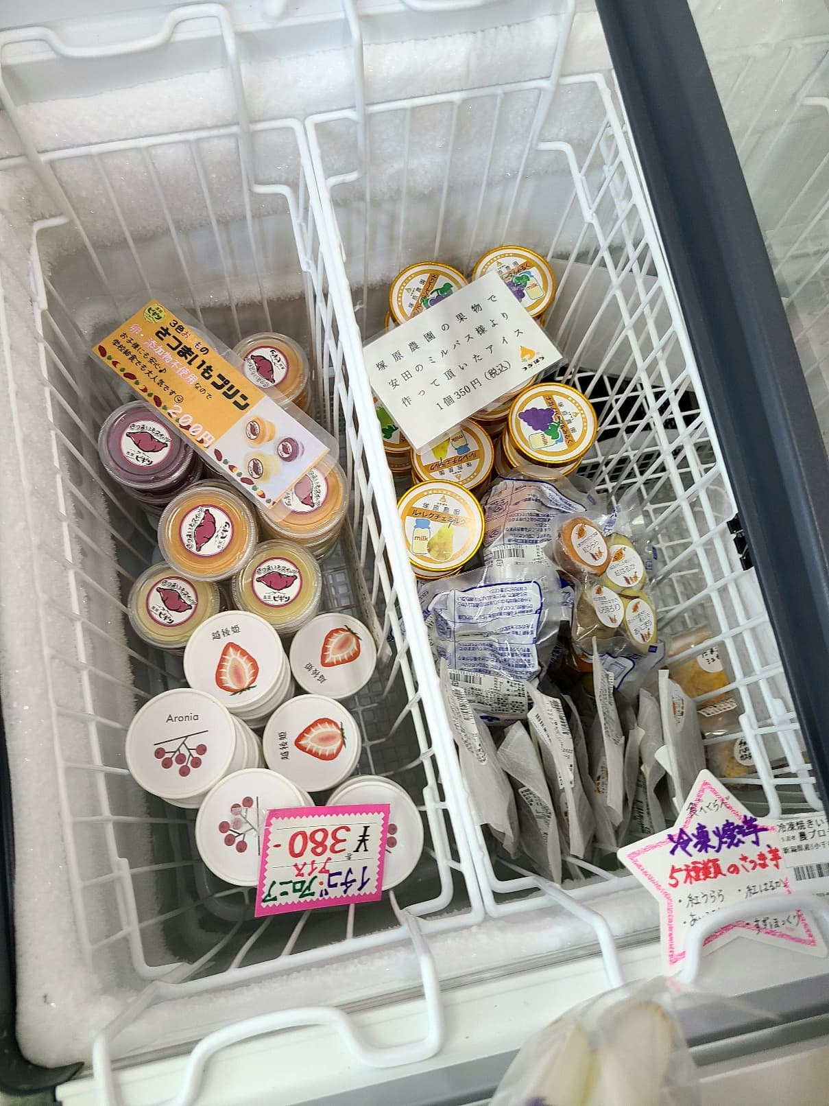 今日は、卵と添加物不要の『さつまいもプリン』と、塚原農園さんの果物と安田のミルクで作った『アイス』を購入しました。『さつまいもプリン』はお子さまも安心して美味しく食べられます。冷たいアイスは濃厚なくちどけがやみつきになるご褒美スイーツでした!